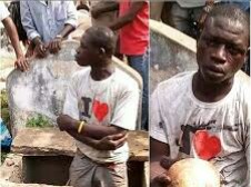 The man pictured above was caught in the early hours of yesterday digging out a human skull out from the grave for money ritual...