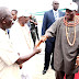 "President Goodluck Ebele Jonathan congratulates Governor Adams Oshiomhole of Edo State on his re-election yesterday for another term in office.