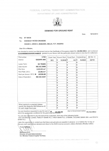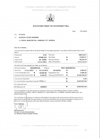 Mr. Melaye’s group obtained documents indicating that Mr. Orubebe was the owner of the properties they identified. One of the documents is the certificate of occupancy for Plot 2722, Kyami District in Abuja. The plot contains 1883.63 square meters. Another certificate of occupancy obtained by the group shows that Mr. Orubebe owns Plot 2460 in the notoriously expensive Maitama area of Abuja. In addition, the minister, who is reputed as one of the most corrupt associates of President Jonathan, also owns Plot 1736 in the Guzape area of Abuja. The certificate of occupancy for the plot was issued in 2008. The Minister for the Niger Delta also acquired Plot 2057 in the Asokoro area.