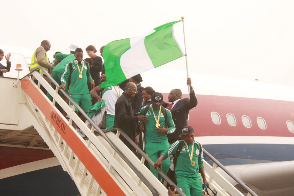 PHOTOS: Victorious Super Eagles Returns Home; Meets Jonathan
