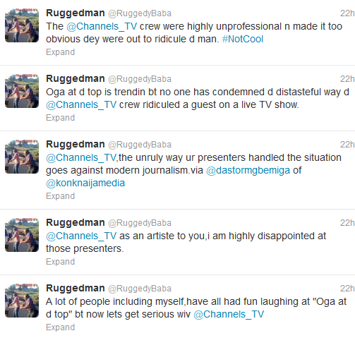 That said; lets move on to #OgaAtTheTop drama. Olu Famous supports the argument of Ruggedman. The trio of Chamberlain, Neota and Maupe displayed 'bias' during the interview with Mr Shem, as one of them was even 'smiling' as others ridicule him. Not cool! I think their #OgaAtTheTop should call them to order!