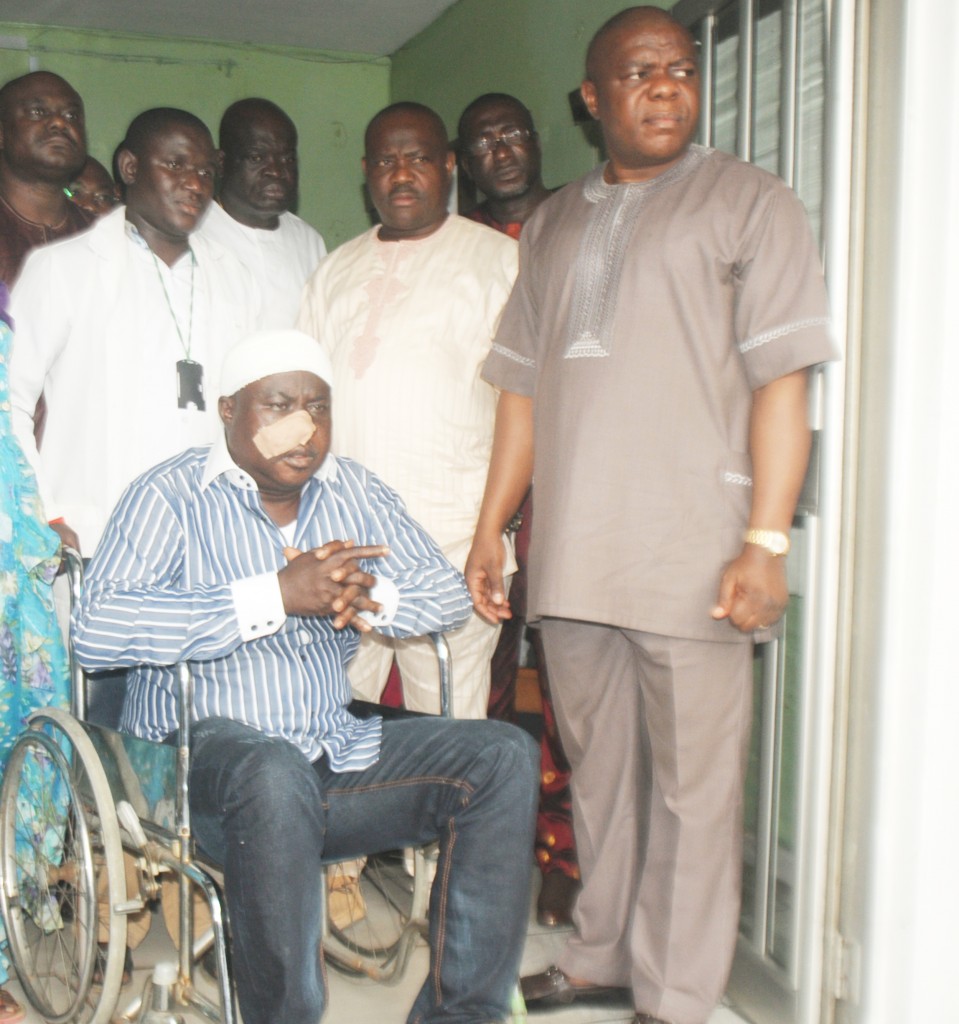 But photos were circulated by Nyesom Wike on Sunday showing a group of politicians from Rivers State, led by him in an "hospital room". The pictures were choreographed to present Hon Chinda as having suffered grave injuries in the brutal attack in the House of Assembly, and become bedridden.been discharged because he did not have any life-threatening injuries.