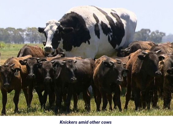 Knickers, a seven-year-old Holstein Friesian, is more than twice the size of the rest of the cows in Myalup, Western Australia.