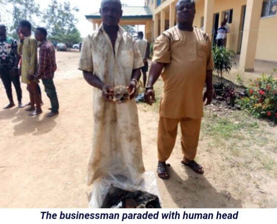 End of the road. A popular businessman in Ifon, Osun State, identified as Supo Bamidele has been arrested in possession of fresh human head, two hands, and three human flesh, properly wrapped inside a polythene sack in Ondo road, Ile Ife.