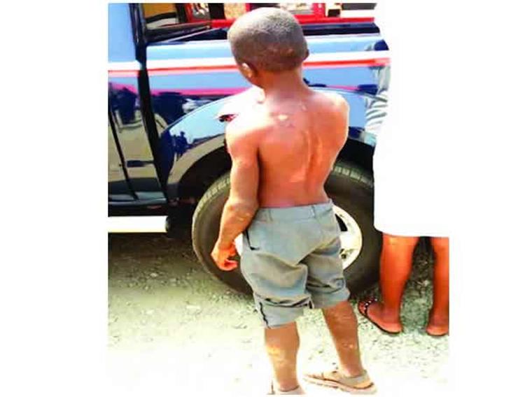The suspect was alleged to have poured hot water on the boy and cut him with a razor blade for allegedly stealing some household items.
