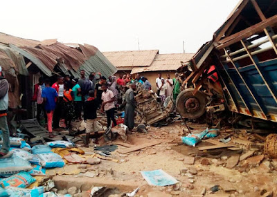 He added that it crashed into three shops and crushed a mini commercial bus locally called “Akoto” with its passengers.